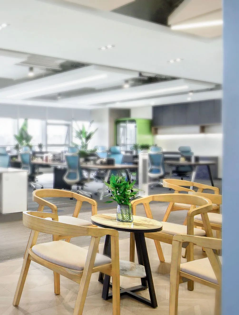 大會(huì )議室一側用綠植把整個(gè)柱子包圍起來(lái),顯得整體統一協(xié)調,并且更富有生機活力。